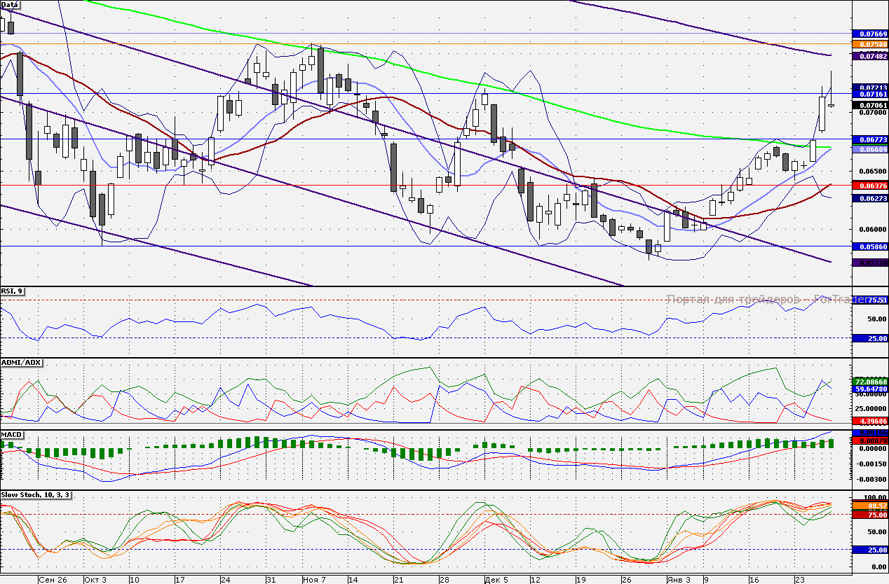 Акции банка закрылись выше поддержки 7,0 коп., которая может быть протестирована в начале сессии. Сопротивлением по бумагам является отметка 7,350 коп., от данной отметки «лонги» стоит сокращать.