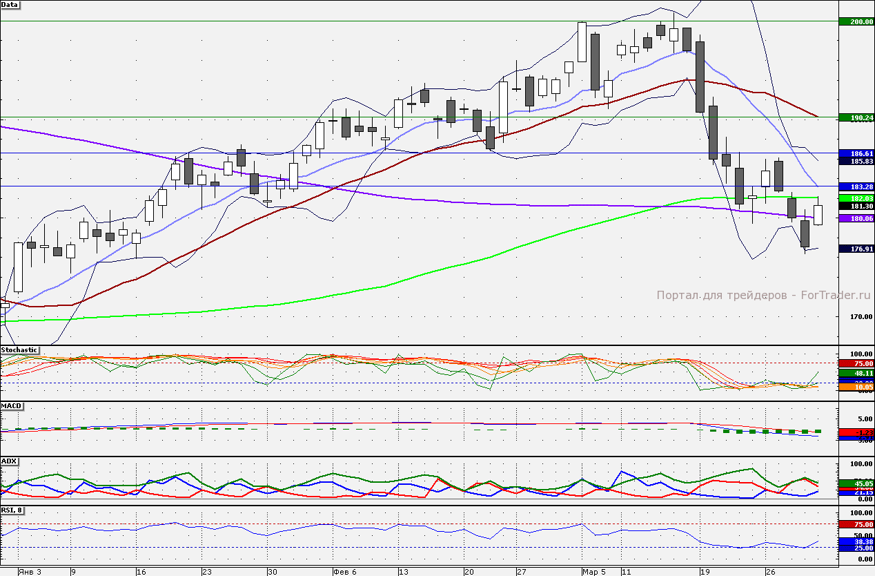 Ближайшие уровни поддержки: 180,06/177,00/175,00