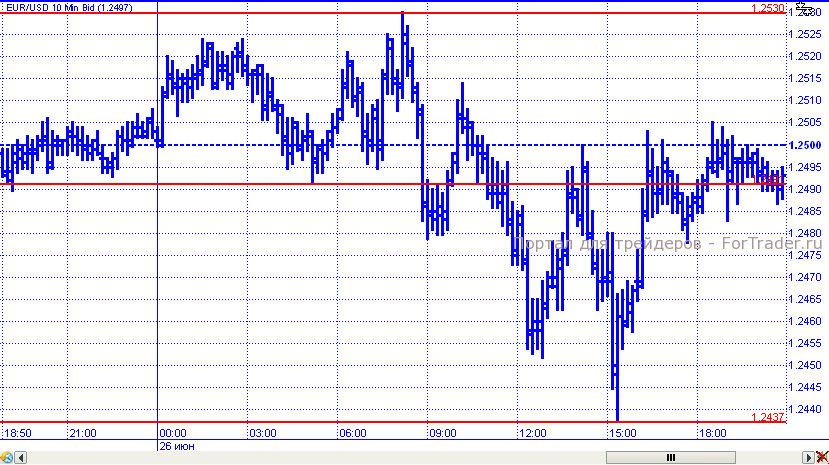 Во вторник напряженность на рынке только возросла. Начало торговых суток пара евро/доллар провела в пределах диапазона 1,2490 – 1,2530. Но впоследствии цены спикировали к уровню 1,2437, на котором отметили внутридневной минимум. Однако, предложенный официальными лицами еврозоны план по созданию полноценной политической федерации смог на короткое время вернуть интерес к евро, что помогло паре отыграть часть понесенных потерь и закрыть день в районе уровня сопротивления 1,2500.