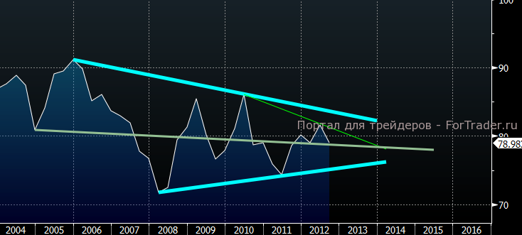 В дополнение приводим показатель индекса американского доллара, который стоит на достаточно сильной поддержке большого фрейма 79,00 п., что трейдеры обойти стороной не смогут.