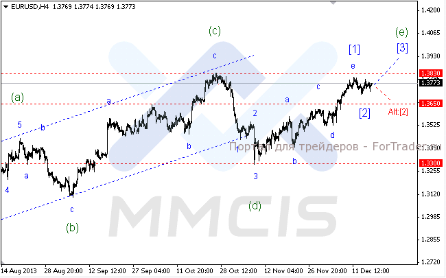 В качестве альтернативного сценария аналитики рассматривают возможность дальнейшего снижения котировок в виде усложненной структуры волны «Alt:[2]». Целевой отметкой для данного сценария станет уровень 1.3650.