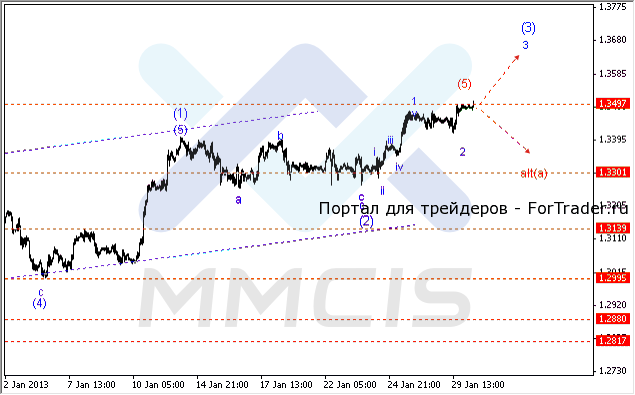 По мнению технических аналитиков, уже сегодня пара может преодолеть уровень сопротивления 1.3485. Поэтому в качестве основного сценария на среду можно рассматривать дальнейший рост пары в виде удлиненной волны «3» в направлении уровня 1.3550. В то же время нельзя исключать и альтернативного сценария, согласно которому пара возобновит коррекцию к уровню 1.3400 в виде волны «Alt:4».