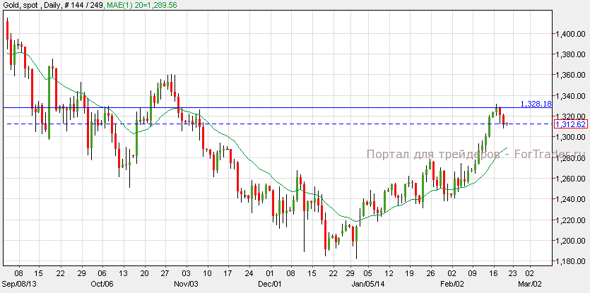 Золото подешевело с уровня $1,330 до $1,308 за унцию, в результате технической коррекции. На данный момент, уровень поддержки находится на отметке 1,300, а уровень сопротивления на отметке $1,330. Золото может достичь уровня сопротивления $1,330 и вырости к отметке $1,355.
