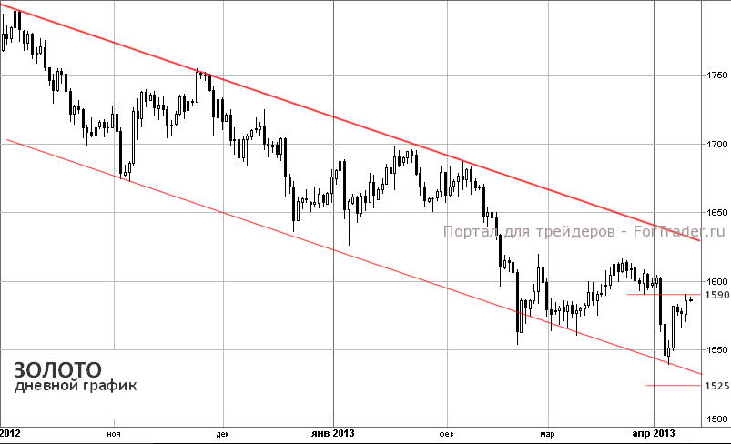 На текущий момент цена золота тестирует уровень сопротивления $1590/тр.унц., которое может и не устоять сегодня в случае вербальных интервенций со стороны ФРС.