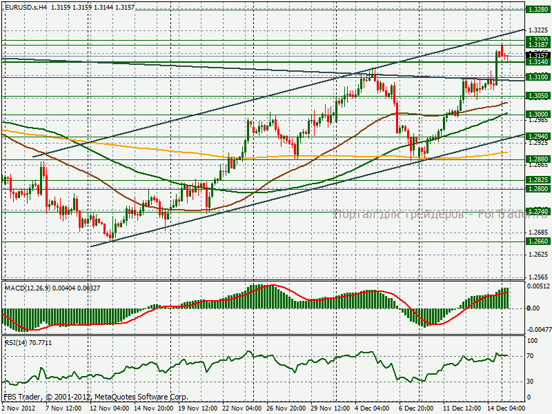 Пара EUR/USD открыла неделю с гэпом вниз и протестировала 8-месячный максимум в $1.3187, после чего откатилась вниз к поддержке в районе $1.3140. За неделю до 11 декабря инвесторы сократили шорты по евро на 4% до $5.1 млрд. На прошлой неделе решения и комментарии европейских властей успокоили рынок.