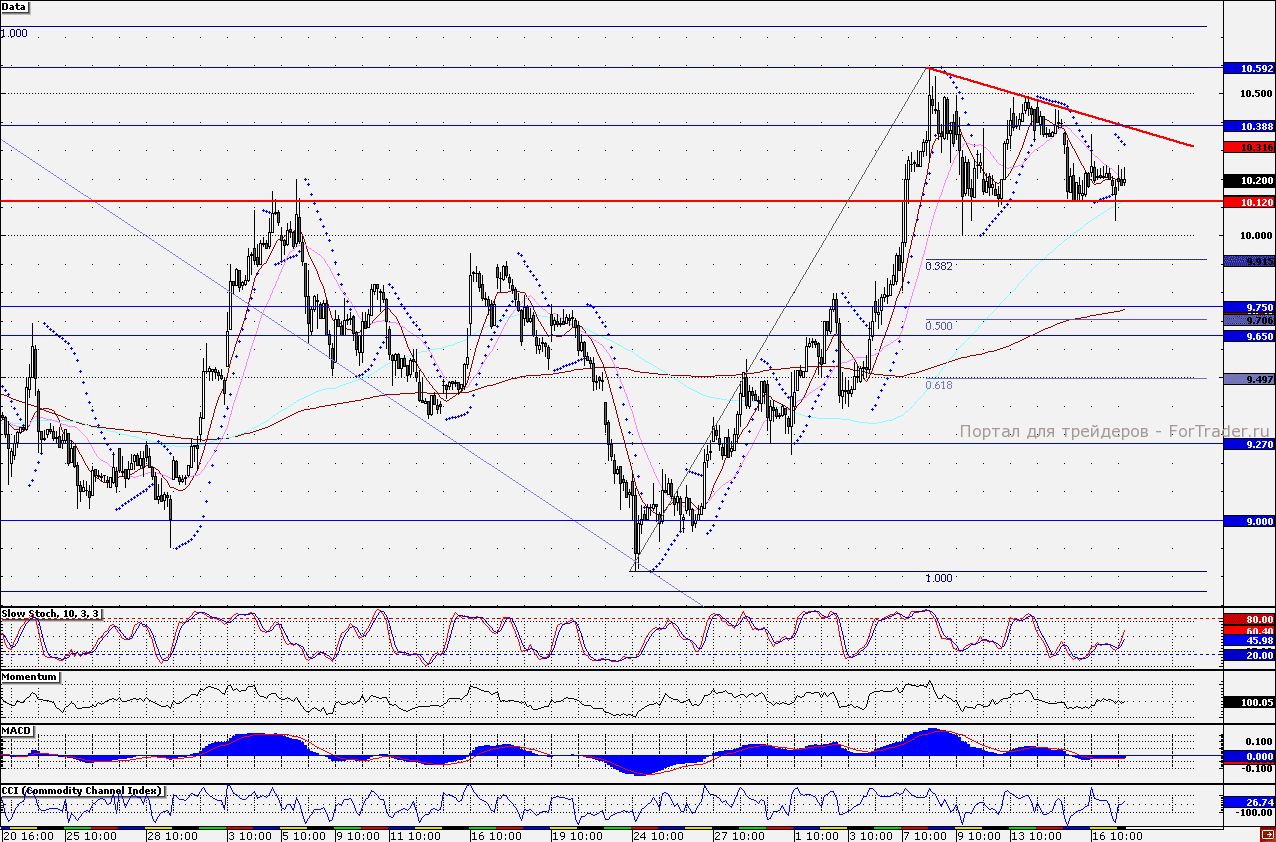 На часовом графике акций ММК образовалась фигура продолжения тренда – «треугольник». Сегодня бумаги пытаются отскочить от нижней границы (10,12 руб.). В случае продолжения восходящей динамики технической целью может выступить верхняя граница «треугольника» — 10,38 руб. Наш 30-минутный торговый робот находится в «лонгах», удерживая длинные позиции от отметки 10,20 руб. Таким образом, при достижении отметки 10,28 руб., длинные позиции рекомендую сокращать и формировать новые только после закрепления акций над верхней границей «треугольника». Однако сегодня реализации «бычьих» планов может препятствовать неопределенность на площадках. Таким образом, при формировании негативных настроений нижняя граница «треугольника» все же может не устоять, тогда целью для снижения выступит отметка 10 руб.