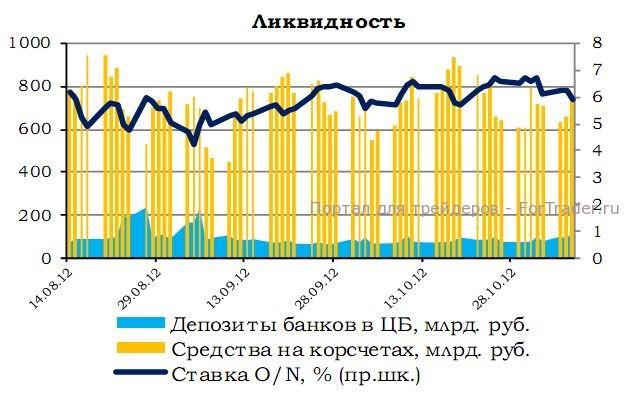 Рубль за прошедший  день  ослабился. Бивалютная корзина подорожала на  0,15%, сегодня торгуется на уровне  35,5403 (+0,14%), при этом доллар укрепился к рублю на 0,19% до 31,6335 руб.; евро выросла до 40,2011 руб. (+0,12%). Средства на корсчетах  банков  увеличились  на  43,9  млрд.  руб., депозиты в ЦБ сократились на 5,1 млрд. руб. Ставка овернайт выросла на 21,00 б.п. и составляет 5,9850 п.п.