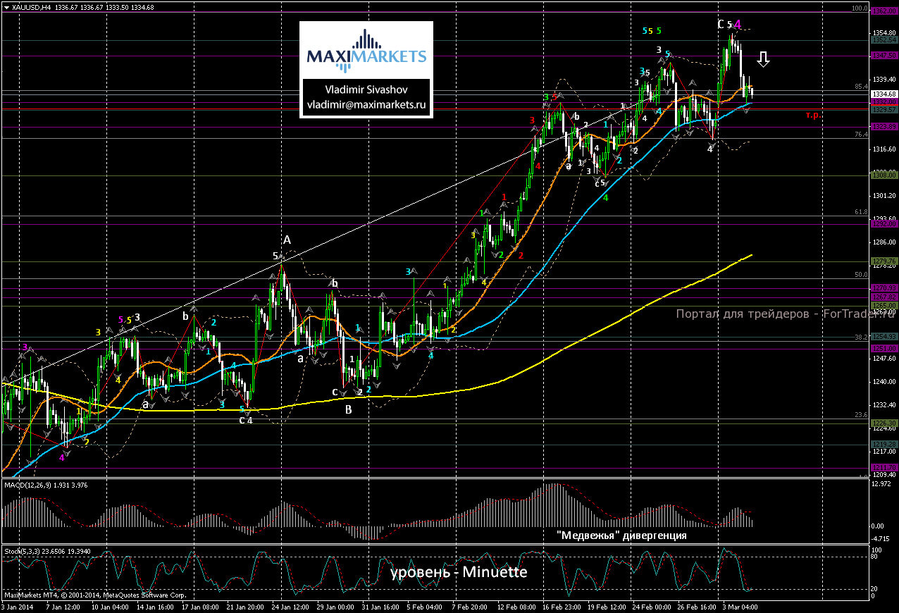 Тем не менее, разворота восходящего тренда, пока, не последовало. При постоянно растущем спросе со стороны Китая и на фоне вероятного восстановления спроса со стороны Индии, драгоценные металлы имеет все шансы продолжить восходящее движение. В свою очередь, первым сигналом разворота станет пробой уровня поддержки по линии 233-х дневной скользящей средней (1330$) и закрепления котировок под ним. В случае дальнейшего ослабления напряжённости вокруг Украины, а также — выхода сильной статистики из США, стоимость металлов может оказаться под значительным давлением со стороны продавцов.