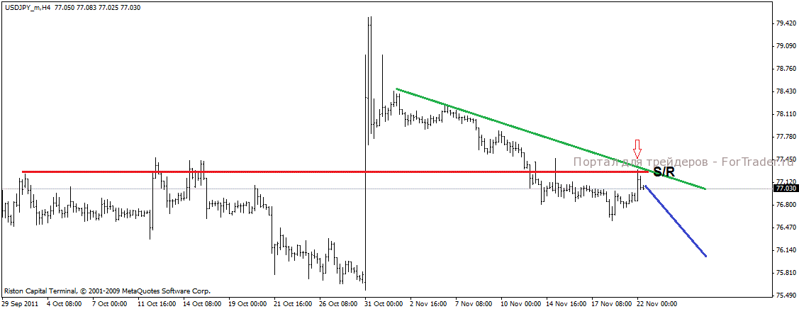 Пара как и предполагалось немного подросла но вверху имеется линия тренда, которая является уровнем сопротивления, очевидно отсюда снижение пары возобновится.