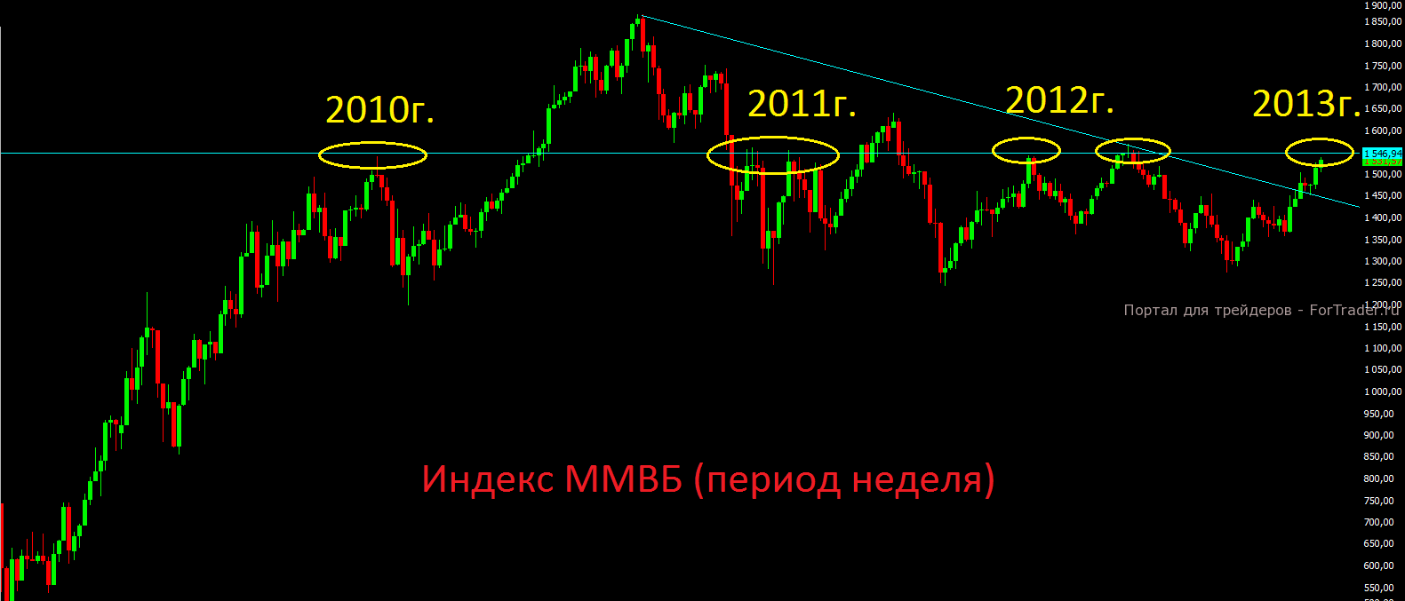 Американские площадки накануне закрыли день существенным ростом близи исторических максимумов. Германский фондовый рынок и вовсе обновил исторический максимум, а вот российские площадки показали почти нейтральную динамику и то, благодаря росту акций Газпрома, который тащит вверх индексы не первую неделю. В некоторых ликвидных бумагах уже вчера виднелись аккуратные существенные продажи и это неспроста. Ряд крупных игроков начинает задумываться о фиксации прибыли, так, как российский индекс ММВБ находится всего в 1% от своего самого сильного сопротивления 1550 пунктов. Именно эта отметка на протяжении 3 последних лет не давала покоя инвесторам и именно от этой отметки на протяжении трёх последних лет начинались коррекционные движения.