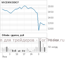 По итогам основной торговой сессии вторника индекс ММВБ закрылся на уровне 1 308,70 пункта, снизившись на 2,29%. Объем торгов по бумагам из базы расчета индекса за день составил 44,0 млрд руб.