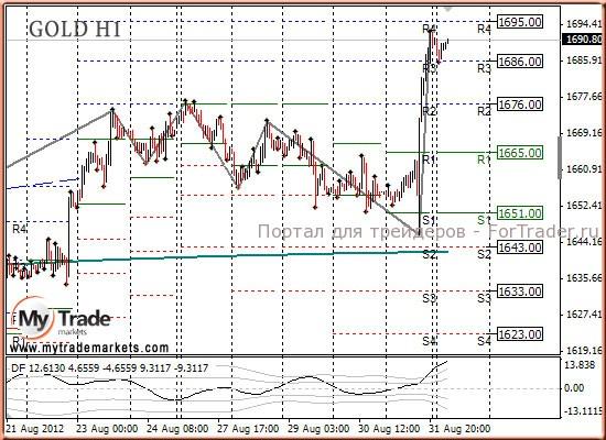 Пятничный Buystop выполнился отлично, профит немного не дошел. На уровне 1692,00 находится важный уровень, поэтому можно закрыться по текущей цене. Кто не боится можно подержать до профита. Думаю, что до профита дойдет и пойдет даже выше. Стоп естественно сдвинуть в безубыток.