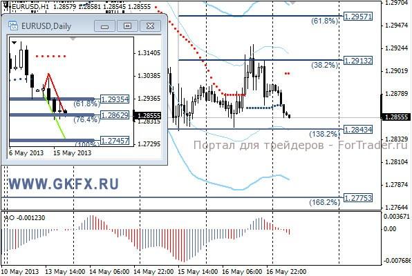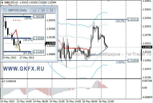 Пара EURUSD вчера консолидировалась, и сегодня может восстановить снижение после вчерашних заявлений представителей ФРС о готовности сворачивать программы покупки облигаций и ценных бумаг. В дополнение к этому Еврокомиссар Тажани вчера вечером высказался о том, что высокий курс евро угрожает производителям Еврозоны. Все это в комплексе может направить евро далее по наклонной сегодня, несмотря на то, что экономические показатели по США разочаровывают. По вчерашней рекомендации цена не достигла цели. На эту неделю традиционно рассматриваю два варианта возможного движения цены, основной красный и альтернативный зеленый. Значимые уровни на сегодня отмечены на часовом графике. Индикатор АО находится у нуля, указывая на неопределенность. Индикатор тренда указывает на снижение. Sell от 1,2890 или выше со стопом 1,2900. Цель 1,2850. Не забываем ставить стоп в безубыток при первой же возможности.