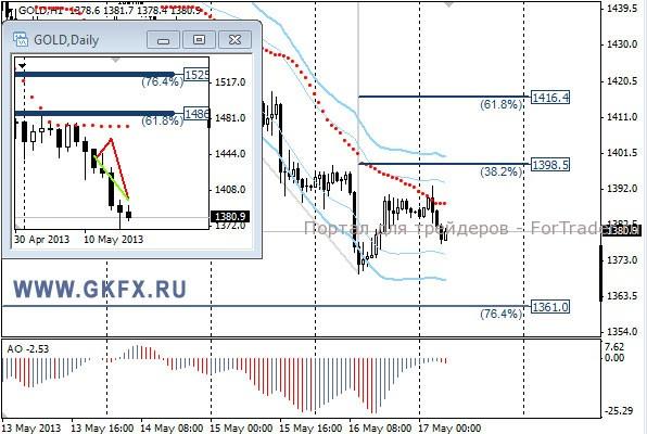 Цены на золото продолжили снижение в то время как индекс доллара остановился. В последние дни золото реагирует на рост доллара с задержкой. Вчерашний день был показательным. Также комментарии представителей ФРС о готовности начать сворачивать программу стимулирования, могли оказать давление на золото. Если индекс доллара сегодня пройдет отметку 84,00, то можно ожидать снижение золота к недавним минимумам 1320-1330,0. Золото уже сутра стремится вниз, поэтому зайти в рынок очень рискованно, можно попасть под откат. Традиционно делаю два варианта движения цены на неделю, основной красный и альтернативный зеленый. Значимые уровни на сегодня отмечены на часовом графике. Индикатор АО находится в отрицательной зоне и снижается, указывая на желание инструмента снижаться в данное время. Индикатор тренда указывает на снижение. Вне рынка.
