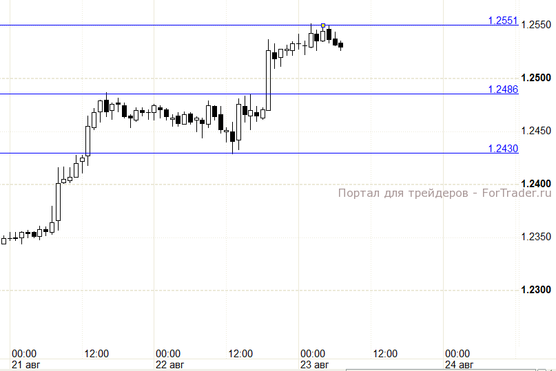 В среду валютная пара EUR/USD консолидировалась в диапазоне 1,2430-1,2486. Под конец дня, пробив уровень сопротивления 1,2486, единой европейской валюте удалось развить восходящее движение к отметке 1,2550