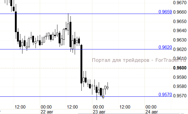 В среду пара USD/CHF консолидировалась в диапазоне 0,9620-0,9660. Сигналом к открытию коротких позиций послужил пробой нижней границы данного диапазона.