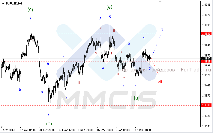 Тем не менее пока в приоритете остается «бычий» сценарий, согласно которому пара возобновит рост в волне «3» восходящего импульса старшего порядка. Подтверждением данного сценария станет тестирование предыдущего максимума вблизи отметки 1.3740. Но, как мы отмечали ранее, снижение котировок к минимумам этого года может послужить сигналом к отмене текущего сценария, что рассматривается в качестве альтернативного варианта.