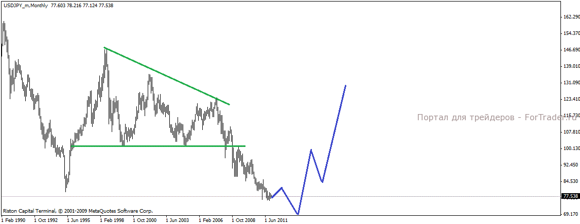 Йена продолжила укрепляться и даже землятресение и авария на атомном реакторе не смогли существенно повлиять на ситуацию. Японская валюта по прежнему сильна и продолжает укрепляться. В новом году очевидно снижение продолжится, но существует большая вероятность начала укрепления доллара, что приведет к развитию бычьего рынка, но начнется рост очевидно в марте-апреле.