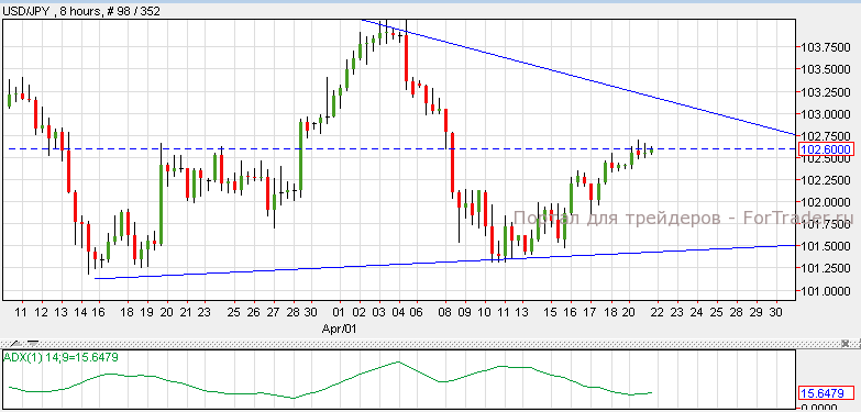 Йена снизилась против основных валют поскольку торговый баланс Японии вышел хуже прогнозов. Согласно техническому анализу 8-часового графика, пара доллар/йена сформировала фигуру «симметричный треугольник» на уровне сопротивления 103 и уровне поддержки 101.50. Если пара пробьет уровень сопротивления, она может вырасти к отметке 103.75. Однако, прорыв ниже уровня поддержки приведет пару обратно к отметке 101.00. Сегодня не ожидается выхода важных экономических новостей по паре доллар/йена.