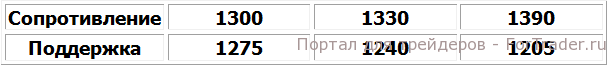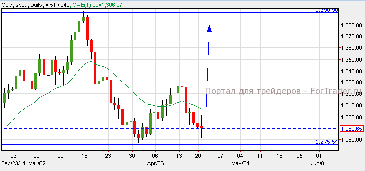 Котировки золота не изменились вследствие низкой торговой активности. Согласно техническому анализу дневного графика, золото сформировало модель «двойное дно» на уровне поддержки 1,275$ и уровне сопротивления 1,390$. Пока золото торгуется выше уровня поддержки, оно может завершить формирование фигуры и в течении месяца достичь уровня сопротивления. Прорыв ниже уровня поддержки, остановит формирование «двойного дна» и вернет золото к уровню поддержки 1,240$.