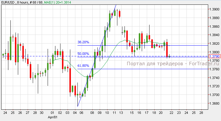 Евро снизился против основных валют ввиду закрытия банков на пасхальные каникулы и низкой торговой активности. Согласно техническому анализу 1-часового графика, пара евро/доллар торгуется на 50%-ном уровне коррекции Фибоначчи. Задержка на уровне поддержки может вызвать рост пары к отметке 1.3820. Тем не менее, импульс ниже этого уровня приведет пару к отметке 1.3780 или к следующему уровню поддержки 1.3760. Сегодня банки и фондовые рынки Европы откроются после пасхальных каникул. Согласно прогнозам, индекс доверия потребителей не изменится и составит 9 пунктов.