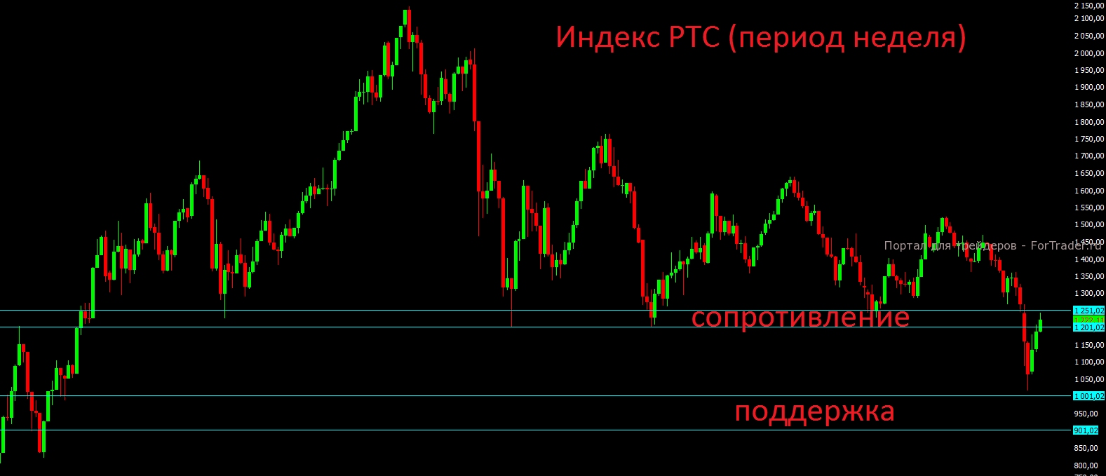Если посмотреть на недельный график индекса РТС, то прекрасно видно, что он находится в зоне 4-х летнего сопротивления, поэтому должна быть вполне очевидна подобная слабость последних дней и аккуратные продажи.