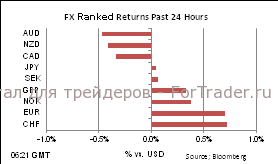 Дни, подобные вчерашнему, в последние два года для евро были редки. Помимо некоторой доли оптимизма, что ЕЦБ планирует какой-то хитрый план, евро получил поддержку за счет агрессивных закупок фондами национального благосостояния. Кроме этого помогло катапультировать евро агрессивное закрытие коротких позиций – трейдеры продавали евро в короткую почти весь год, без особых результатов. И в ближайшие дни можно ожидать дальнейшего короткого покрытия, так как евро забрался выше 50-дневной средней, а некоторые заговорили уже о повторном тестировании 100-дневной средней (проходит сейчас через 1,2630) в самое ближайшее время. Стоит ли говорить, что единая валюта вчера оказалась самой сильной среди основных, внушительно прибавив к доллару, иене и даже осси. Последний пострадал от публикации BHP Billiton данных за прошедший квартал: доходы крупнейшей в мире добывающей компании упали на 35% в прошедшем фискальном году. И BHP не одинока: другие добывающие гиганты Xstrata и Rio Tinto опубликовали схожие результаты. Осси сейчас вернулся ниже 1,045. EUR/AUD взлетел к 1,1930, так как все больше трейдеров закрывают шорты в этом кроссе. EUR/GBP вернулся к 0,79, что не удивительно в свете публикации вчера разочаровывающих данных по госфинансам и статистики от CBI.