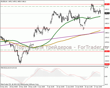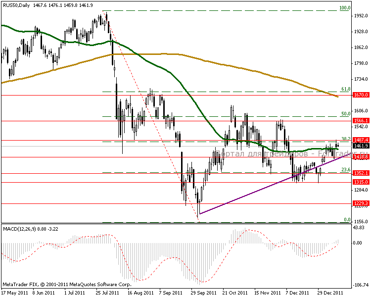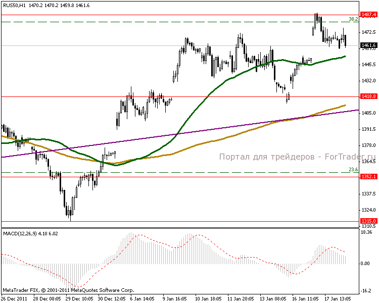 Часовой период говорит о завершении коррекции и возобновление растущей тенденции. Ожидаем пробой линии сопротивления в 1487 пунктов уже сегодня. MACD поддерживает восходящее направление.