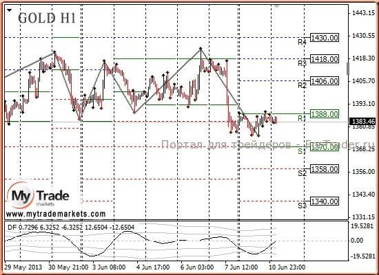 Цены на золото обозначили вчера нижнюю границу диапазона на уровне 1375,00, в котором будут торговаться ближайшее время. Предположительная верхняя граница находится на 1388,00.