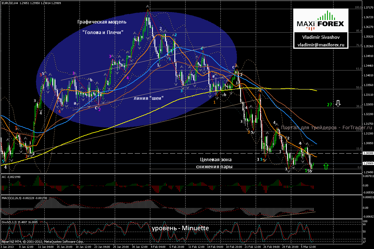 Данные о состоянии экономики Еврозоны, опубликованные во вторник, продолжали оказывать поддержку единой европейской валюте. На утренних торгах в среду курс пары, вновь, начал расти, однако рост продолжался недолго. После выхода европейской статистики, подъём евро был остановлен и от уровня 1.3070, курс пары резко пошёл вниз. Причиной изменения ценовой динамики стало — разочарование участников торговли данными по динамике ВВП Еврозоны. По уточненным показателям за 4-й квартал 2012г., объём ВВП в зоне обращения единой валюты, снизился на 0,6% по сравнению с предыдущим кварталом. В 27 государствах — членах Евросоюза, падение ВВП было отмечено — и в 4-м квартале, и в целом — по 2012 году. Данные статистики, вновь, засвидетельствовали, что экономика Европы, по-прежнему, остаётся в кризисе. Оживления экономики не видно уже давно, и ждать источников стабилизации экономической ситуации в регионе, пока, неоткуда. На этом фоне, евро, продолжил снижение, которое, после выхода в США — сильных данных по занятости от агентста ADP, превратилось в обвальное падение и зафиксировало на закрытии торгов — минимальный дневной уровень на отметке 1.2965.