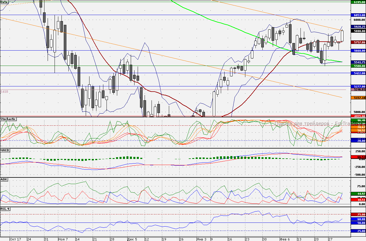 Ближайшие уровни поддержки: 5757,86/5670,00/5540,00/5500,0/5420,00