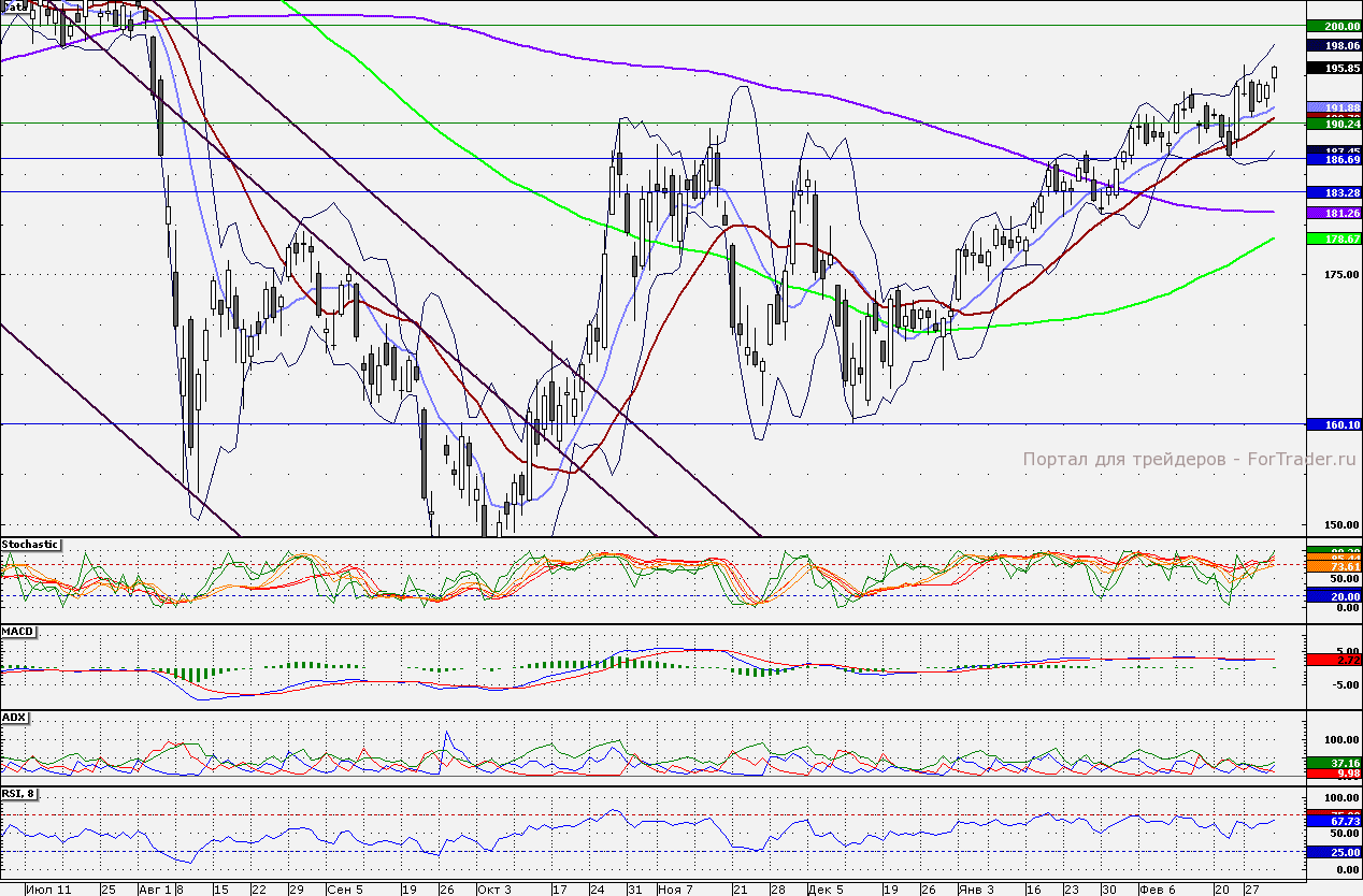Ближайшие уровни поддержки: 194,00/191,88/190,70/190,00/186,70