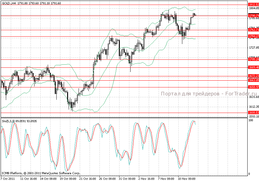 Золото подошло к области сопротивления 1800,00. При сокращении ликвидности на рынках можно ожидать развития нисходящей коррекции вплоть до отметки 1762,0. Технические индикаторы указывают на начало формирования нисходящего тренда. Сопротивление 1800,00 может быть краткосрочно пробито вверх до района 1815,00, поэтому при продажах стоп ордера нужно выносить выше этой области.