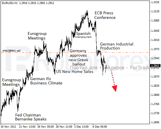 Тон текущему снижению пары задал шеф Европейского Центробанка Марио Драги, намекнувший на возможное снижение ключевой процентной ставки. Рынки безоговорочно ему верят. Стоит вспомнить летнее обещание главы ЕЦБ запустить механизм покупок долговых обязательств проблемных стран. Воз и ныне там, регулятор ни евроцента не потратил на эти цели, но доходность по бумагам упала к годовым минимумам. Похоже, что сейчас мы наблюдаем схожую картину — в словах Драги не было никакого обещания понизить ставку, но рынки восприняли это чуть ли ни как свершившийся факт.
