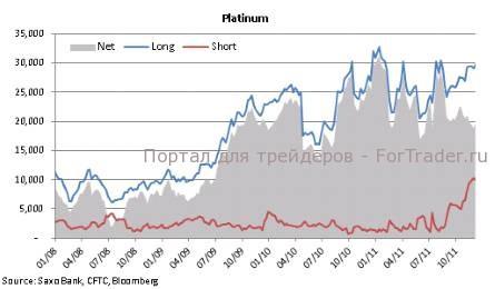 Для рынка платины эта неделя также стала результативной в плане роста благодаря сочетанию относительной дешевизны золота, очень большой короткой позиции и волнений относительно способности Южной Африки – крупнейшего производителя этого металла в мире – сохранить производство на текущих уровнях. Объяснением того, почему за прошлую неделю платина обошла золото почти на 5%, может послужить соотношение длинных и коротких спекулятивных позиций по фьючерскому контракту на COMEX. На протяжении последних нескольких недель 2011 года короткие позиции продолжили расти одновременно с длинными позициями, из-за чего чистая позиция практически не изменилась. В условиях постепенного роста цены, нельзя исключать вероятность закрытия коротких позиций, принимая во внимание нынешний высокий объем таких сделок.