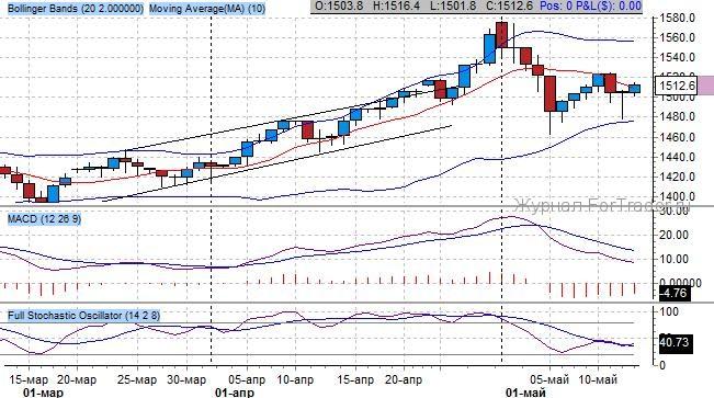 Среднесрочный тренд повышательный, текущая цель движения – очередные продажи были выкуплены с подъемом котировок над уровнем 1500 $/тройскую унцию.