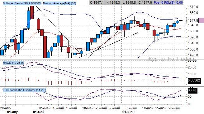 1545.7 $/тройскую унцию (-0.08% к цене закрытия предыдущей торговой сессии)