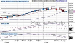Среднесрочный тренд боковой, текущая цель движения – разворот с вершины на 1440 пунктов. Консолидация котировок у порогового уровня 1400 пунктов.