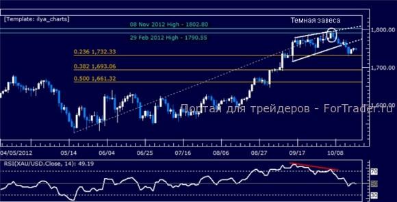 Цены провели повышающую корректировку после встречи с поддержкой на уровне 1732.33, 23,6% коррекции Фибоначчи. Первоначальное сопротивление расположено по дну Восходящего клина (Rising Wedge) в области 1770.86. Прорыв вверх направлен в область 1790.55-1802.80. Прорыв вниз будет направлен в область 38,2% уровня Фибоначчи 1693.06.