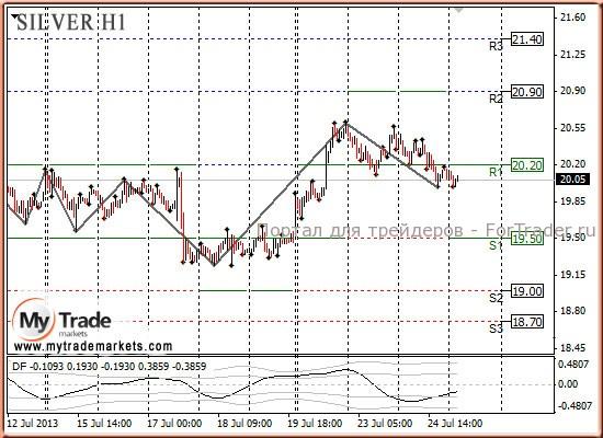 На рынке ходят мнения, что в свете хорошей статистики по США, ФРС на следующей неделе в ходе своего заседания может принять решение о начале сокращения программы QE3. По этой причине золото может продолжить понижательную динамику, тем более если статистика по США будет позитивной.