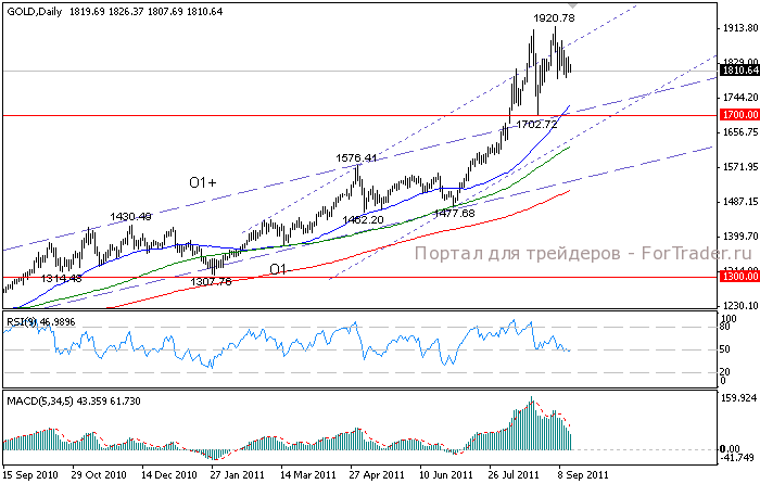 С технической точки зрения металлу пока удается удерживаться выше отметки 1800.00, что указывает на позитивные настроения. Однако данная отметка не является ключевой, и падение ниже нее приведет лишь к тестированию 50-дневной SMA или поддержки в районе 1700.00. Прорыв и закрепление ниже 1700.00 станет сигналом к смене среднесрочной тенденции, и нацелит металл на тестирование 100-дневной SMA. Однако пока золото торгуется выше отметки 1700.00, а тем более, выше 1800.00, вероятность роста к текущему максимуму 1920.00, а также прорыва в направлении отметки 2000.00 остается высокой.