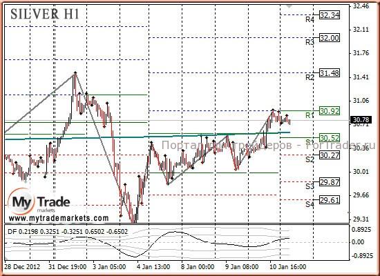 В случае роста цен на золото выше 1690,00, это будет говорить нам о том, что понижающая конструкция на днях прекращает действие. Пока что этого не произошло, и нужно рассматривать сделки преимущественно на продажу.