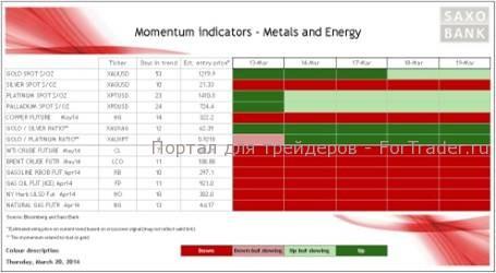 Сочетание снижения внимания к Украине после проведенного на прошлых выходных референдума в Крыму и относительно склонного к ужесточению заявления Федерального комитета по открытым рынкам (FOMC) поставило золото в уязвимое положение. До такой степени, что позитивный тренд, свидетелями которого мы были с начала января, может смениться периодом консолидации. На нашем мониторе краткосрочных импульсов весь сектор энергоносителей горит красным светом, поскольку воспоминания о сильном зимнем спросе постепенно стираются в памяти.