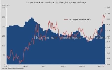 Медь продолжает консолидироваться после того, как недавняя масштабная распродажа привела цену как меди, обогащенной рудой, так и меди на Лондонской бирже металлов к минимальным с 2010 года значениям. Медь, обогащенная рудой (HGK4), в настоящий момент держится в пределах относительно узкого диапазона между 2,9 и 3,0 долларами за бушель. Рынок волнует вопрос о том, что случится с растущими запасами, отслеживаемыми Шанхайской биржей фьючерсов, поскольку с декабря они выросли на 70% (Bloomberg), несмотря на слабейшее с 2009 года начало в объеме промышленного производства Китая.