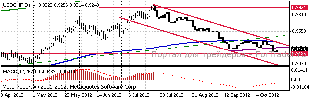 Ближайшая поддержка держится в области Chf0.9185 (минимумы 78 мая), следующая на Chf0.9110.
