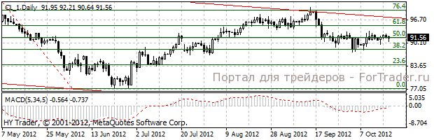 Фьючерсы держатся в рамках прежнего диапазона. Выше сопротивления $92.90/$93.00 следующее остается в области $93.65/$93.85 (максимумы 10 октября и 21 сентября). Ближайшая поддержка недавние минимумы на $89.80. Далее поддержка будет найдена у минимума 8 октября на $88.20. Следующей поддержкой выступает область $87.70/60 (минимум 3 августа), преодоление которой откроет дорогу на $87.00.