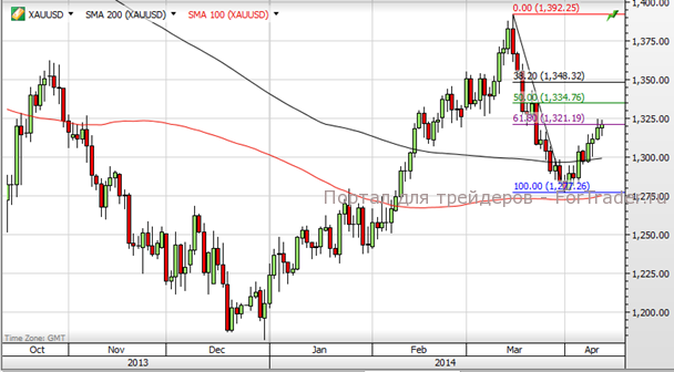 Несмотря на то, что общий объем вложений в биржевые индексные продукты, обеспеченные физическим золотом, снижается на протяжении последних четырех недель, драгоценный металл, скорее всего, будет пользоваться спросом в ближайшее время. Возобновившееся падение на фондовом рынке, вызванное продажами акций в технологическом индексе Nasdaq и волнениями по поводу ситуации на Украине, поможет золоту остаться выше отметки 1,300 долларов за унцию, при этом область сопротивления в промежутке между 1,335 и 1,348 долларами может оказаться достаточно прочной в свете преобладающего среди инвесторов нейтрального отношения.