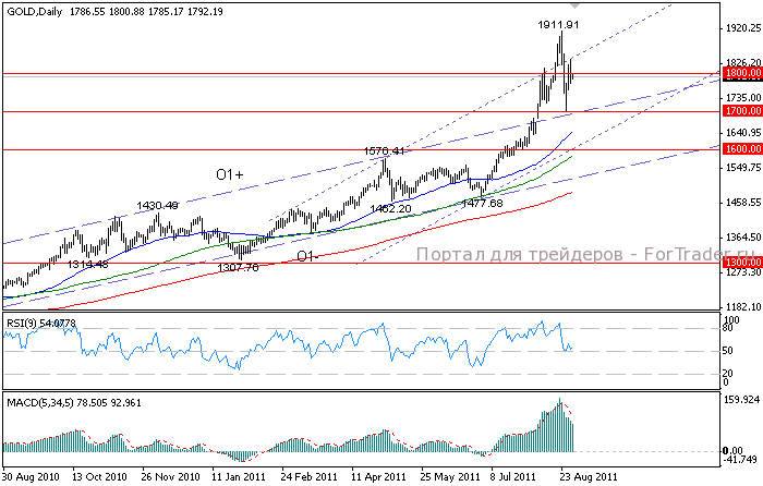 С технической точки зрения обратное падение золота ниже отметки 1800.00 ухудшает его перспективы. При этом не исключено повторное тестирование поддержки в районе 1700.00, а в случае прорыва ниже последует тестирование 50-дневной SMA, проходящей в районе 1645.00. Однако если металл после непродолжительной консолидации вновь закрепится выше отметки 1800.00, он, вероятнее всего, продолжит рост в направлении текущего максимума 1910.00, а также далее к отметке 2000.00.