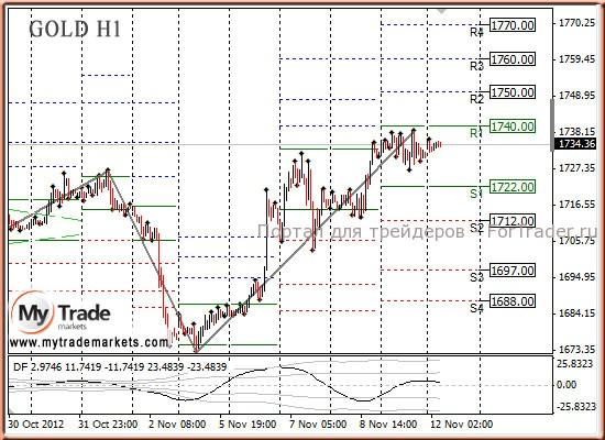 Настроения по-прежнему в пользу золота, и на первый план выходит «фискальный обрыв» в США, опасения которого будут позитивно сказываться на золоте. Также возможное расширение программы QE3 на декабрьском заседании играет в пользу золота.