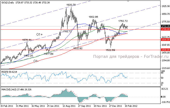 В начале мировой сессии золото испытывало давление со стороны неопределенности относительно греческого долга. Участники рынка опасаются дестабилизации в финансовой системе Европы, которая может стать следствием неуправляемого дефолта Греции, что заставляло их отказываться от рискованных активов и золота в пользу наличного доллара. Однако позже ситуация развернулась. В первую очередь, Греция опровергла появившиеся слухи о возможном частичном или полном удержании средств нового пакета помощи. Кроме этого, в прессе появились сообщения о том, что ЕЦБ и центральные банки стран еврозоны обменяют имеющиеся у них греческие облигации на новые, что откроет путь к соглашению между Грецией и частными кредиторами. Все это вселило надежду на позитивное разрешение греческих проблем, улучшило настроения на рынках и открыло пусть для покупок рискованных активов и золота. Вдобавок, улучшению настроений способствовали позитивные макроэкономические данные из США. Также росту цен на металл помогло резкое ослабление позиций доллара США.